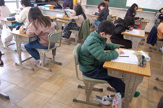 2組は社会で、「学年のまとめ」のテストを行っていました。